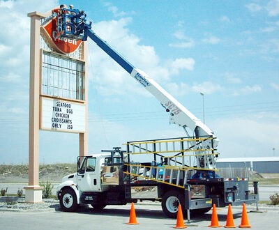 Typical ManliftAnother consideration as we journey through the topic of sign installation is Safety. Sign Installation can be a very dangerous type of work. There are many OSHA regulations to insure you have a safe working environment.